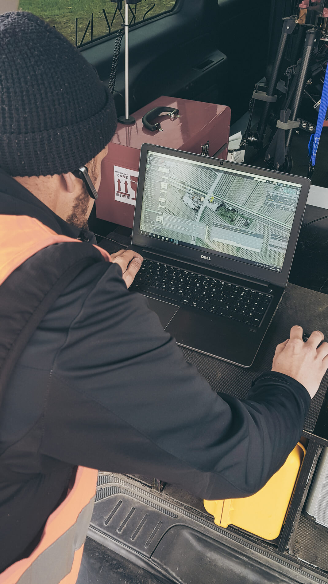 Daten werden von Ingenieuren und Geographen verarbeitet und ausgewertet