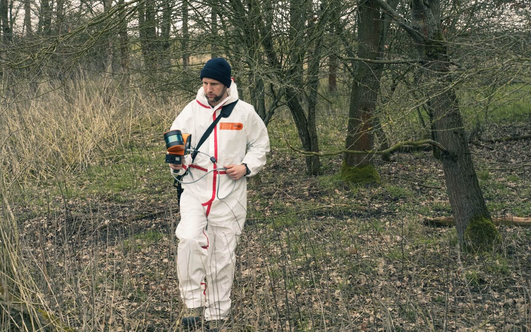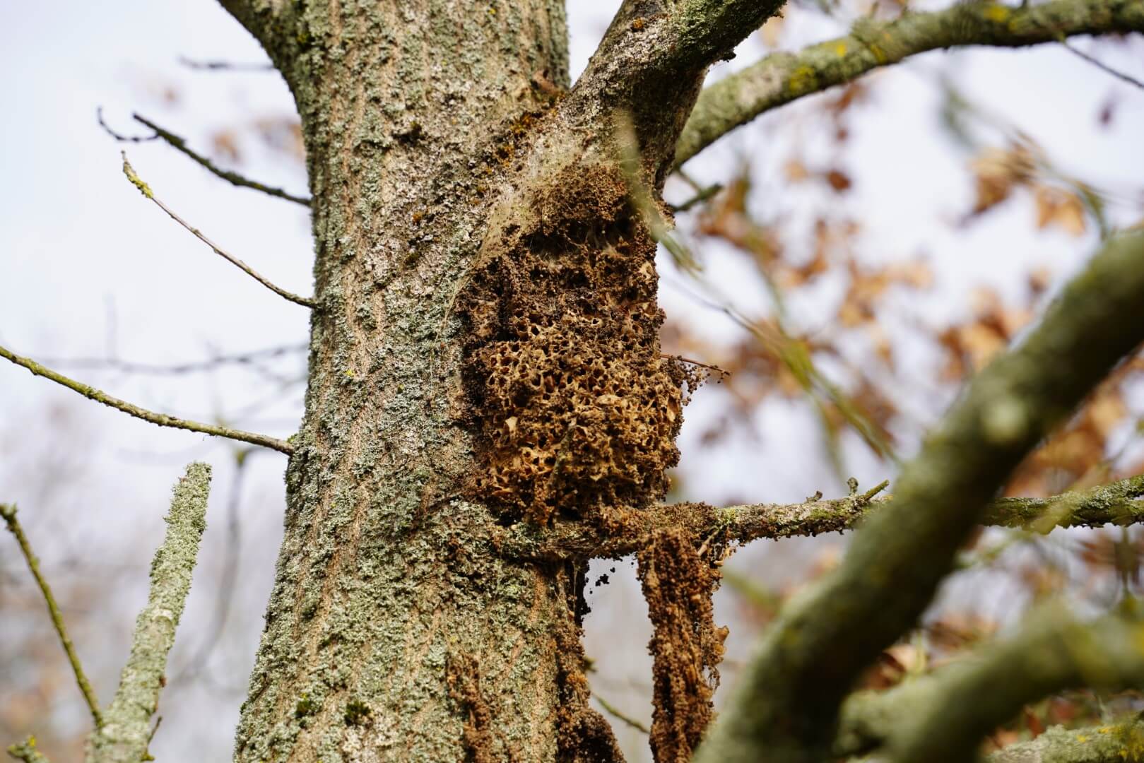 Sie fragen sich sicher schon, warum wir bei der Arbeit Schutzanzüge getragen haben. Der Grund: Eichenspinner. Das durch den Eichenspinner befallene Elbvorland ist zu bestimmten Jahreszeiten sehr unangenehm zu betreten und erschwert somit jegliche Arbeit. Die Eichenspinner haben Brennhaare, die ein Nesselgift enthalten, welches lange anhält. Davor mussten wir uns schützen. Dies war neben der Zugänglichkeit ein Grund, weshalb wir wichtige Teile des Schutzgebiets per Drohne beflogen haben.