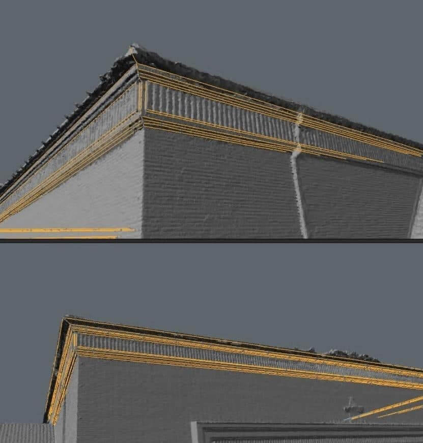 Um mit dem 3D Modeling für Virtual Reality Umgebungen, Räume und Gegenstände zu beginnen, benötig man eine solide Grundlage auf Basis von Scans der realen Welt. Es sei denn, das VR Modell entsteht ausschließlich in einer CAD bzw. 3D Software, doch dazu mehr im nächsten Abschnitt. Wir nutzen für unsere VR Scans verschiedene Technologien, hauptsächlich jedoch Drohnen, Laserscanner und High End Kameras. Mittels Photogrammetrie und Laserscanning gewinnen wir texturierte (farbige) Punktwolken die den Realzustand der Umwelt und Objekten dreidimensional darstellen. Durch die Vermaschung der Punktwolke zum Drahtgittermodell erhalten wir ein rohes High Poly Mesh wie auch eine, zumindest auf den ersten Blick, saubere Textur. Da dieses Modell zu groß, unhandlich und die Textur ungeordnet ist, muss es unserem 3D Modeling Prozess unterzogen werden um es „VR ready“ zu machen.